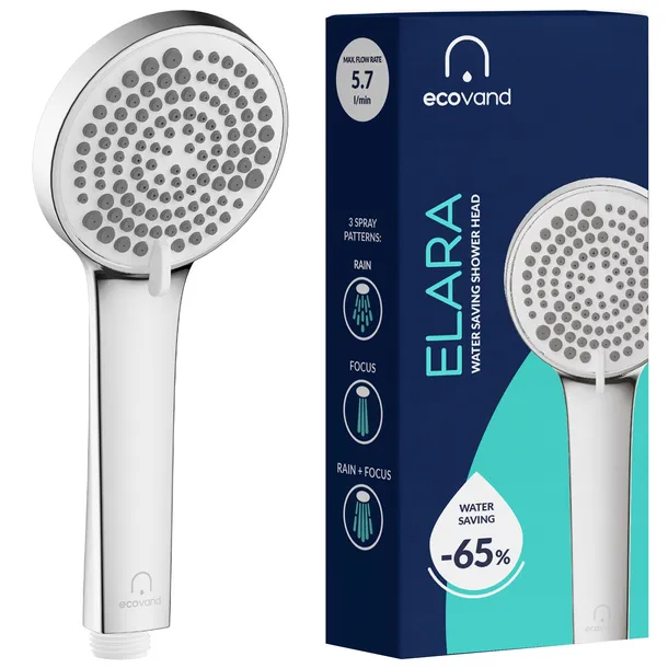 EcoVand Elara posiada wbudowany regulator przepływu, który ogranicza zużycie wody do maksymalnie 5.7 litra wody na minutę. To zaledwie 86 litrów podczas 15-minutowego prysznica.