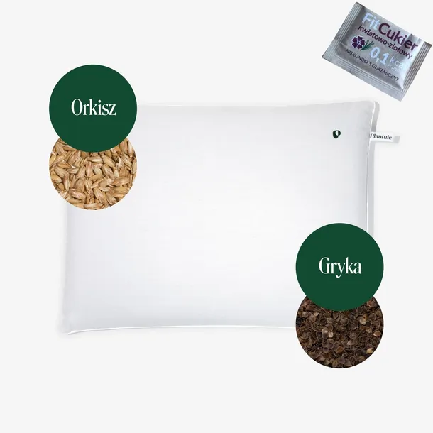 Dwustronna poduszka z ekologiczną łuską gryki i orkiszu - 45x60cm - Plantule