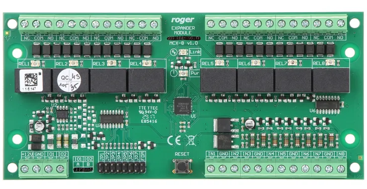 MCX8-BRD jest ekspanderem wejść i wyjść przeznaczonym do pracy w systemie kontroli dostępu RACS 5. Urządzenie udostępnia 8 parametrycznych linii wejściowych oraz 8 wyjść przekaźnikowych. Każde z wejść może być indywidualnie sparametryzowane w zakresie czasu reakcji oraz topologii dołączonych styków i rezystorów.