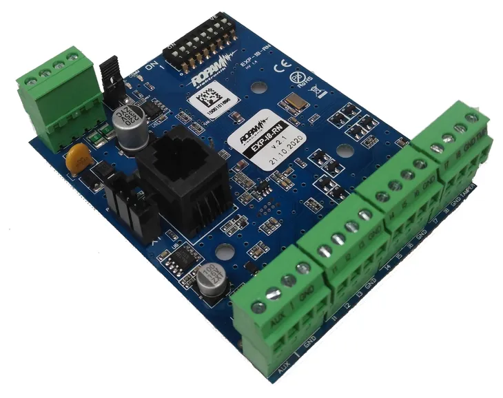 Moduł wejść, ekspander Ropam EXP-I8-RN zapewnia 8 dodatkowych wejść w systemie. Jest kompatybilny z OptimaGSM, NeoGSM-IP, NeoGSM-IP-64 (wymagane SV≥2.0 i HV≥1.4) oraz Hub-SimplePLC (RopamNET).
