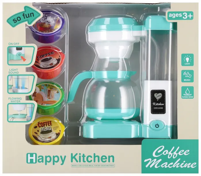 Zalety produktu : ekspres posiada efekty dźwiękowe oraz świetlne- parzenia kawy, bulgotania wody, świeci lampka zasilania na czerwono, ekspres posiada pojemnik na wodę który po napełnieniu pobiera ją, przez zbiornik leje się woda prosto do dzbanka, dzięki czemu idealnie imituję proces parzenia kawy. Najlepiej smakuje kawa przygotowana samemu. Pozwól dziecku na zaparzenie własnoręcznie kawy ekspresem od MEGA CREATIVE Produkt ten idealnie odzwierciedla prawdziwy sprzęt kuchenny Wspaniałe kolory i wspaniała zabawa. Całość wykonana z plastiku. Zawartość zestawu: ekspres do kawy, 4x kapsułka z kawą. Wymiary/waga/zasilanie: wymiary produktu dł. x wys. gł. cm : 10x18x16, wymiary opakowania dł. x wys. x gł. cm : 29x25x11,waga produktu bez opakowania kg : 0,52 kg, waga produktu w opakowaniu kg :1,03 kg, wymaga zasilania bateriami 3 x AALR06- nie załączono do zestawu. Przeznaczony dla dzieci w wieku 3 . Pakowany w kartonik z okienkiem. W kartonie zbiorczym po 24/48 szt.
