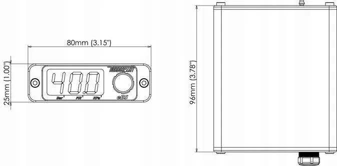 - 3 segmentowy wyświetlacz: z regulowaną jasnością można skonfigurować dla PSI, KPa lub BAR i będzie migać, gdy zostanie osiągnięte nadmierne doładowanie lub limit obrotów, umożliwiając użycie urządzenia jako wskaźnika doładowania, obrotomierza lub światła zmiany biegów.
