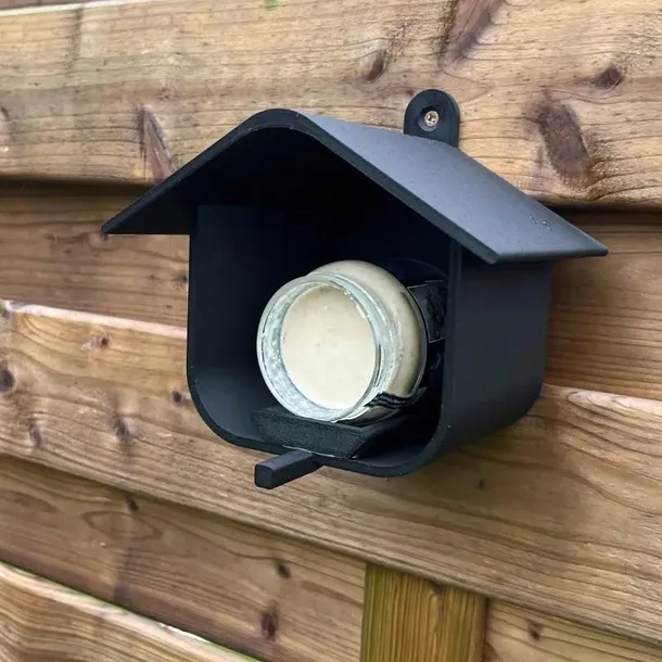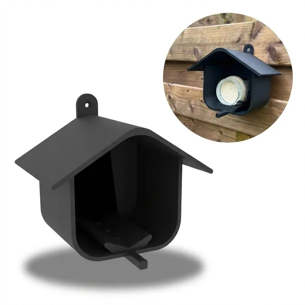 Kształt daszku chroniący pokarm: Zadaszenie w formie domku osłania ziarno lub kulę tłuszczową przed deszczem i śniegiem, dzięki czemu pożywienie pozostaje suche i dłużej zdatne do jedzenia dla ptaków.