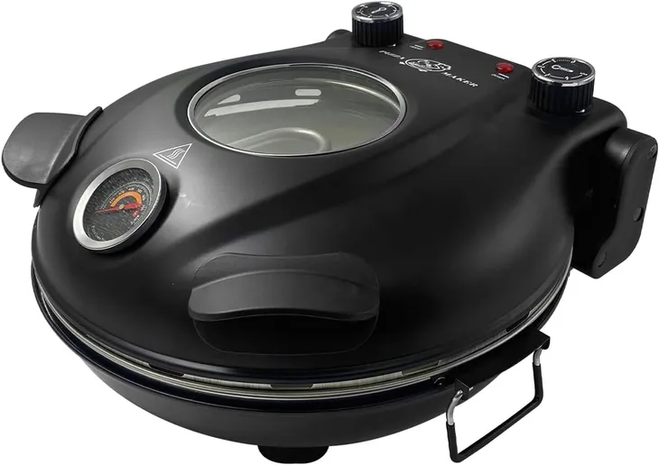 - Mocny - Wyposażony w regulowany termostat, osiąga temperaturę do 420°, idealny do pieczenia pizzy i nadania jej chrupkości. Opór dochodzący do 1200 W pozwala utrzymać temperaturę przez długi czas, idealny dla pojedynczej pizzy.