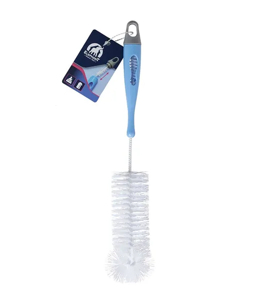 Szczoteczka do mycia, czyszczenia wszelkiego rodzaju butelek. Włókna syntetyczne zostały specjalnie stworzone z myślą o szczotkowaniu i zbieraniu wszystkich rodzajów substancji płynnych lub stałych. Końcówka dopasowana do czyszczenia butelek, wazonów oraz butelek dla dzieci. Dodatkowa mini szczoteczka znajdująca się w rączce sprawdzi się natomiast do czyszczenia smoczków dziecięcych. Szczotka do butelek i smoczków marki Elephant to produkt, jakiego nie może zabraknąć na wyposażeniu żadnego gospodarstwa domowego.