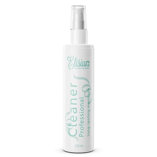 Płyn w sprayu do odtłuszczania paznokci żelowych Cleaner Professional od marki Elisium. Produkt odtłuszcza i usuwa lepką warstwę depresyjną z płytki paznokcia podczas pracy z lakierami światłoutwardzalnymi.