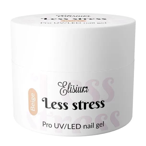 Co wyróżnia ten produkt?Jego wyjątkowa formuła "LESS STRESS" sprawia, że aplikacja żelu jest niezwykle łatwa i wygodna. Średnio gęsta konsystencja pozwala na precyzyjne i równomierne pokrycie paznokci, a warstwa dyspersyjna zwiększa trwałość stylizacji. Samopoziomujący i łatwy do opracowania żel świetnie reaguje na pracę pędzlem, dzięki czemu jest odpowiedni zarówno dla doświadczonych stylistów, jak i początkujących. Pozwala uzyskać idealną, niespływającą bryłę, unikając zalewania skórek wokół paznokci. Jest twardy, stabilny i nie rozpręża się, co ułatwia osiągnięcie pożądanego kształtu paznokcia. Żel ten posiada około 30% krycia, co umożliwia uzyskanie efektu przezroczystych paznokci w wybranym odcieniu. Możesz go wykorzystać do przedłużania i nadbudowywania płytki paznokcia.