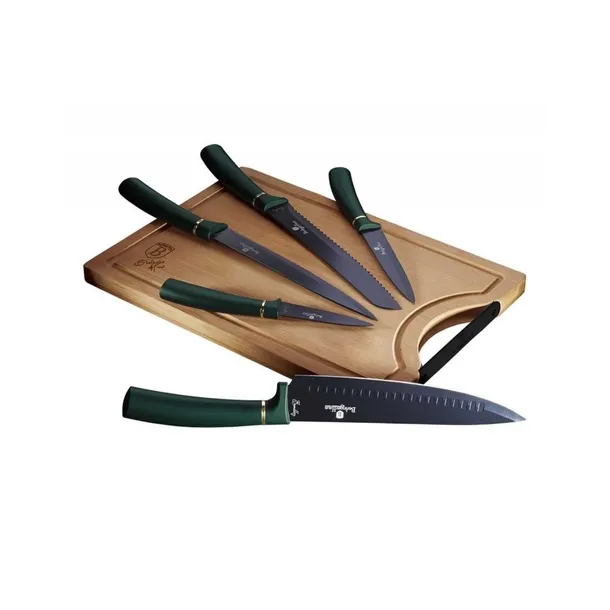 Zestaw 5 noży z bambusową deską do krojenia firmy BERLINGER HAUS z serii Emerald Collection.