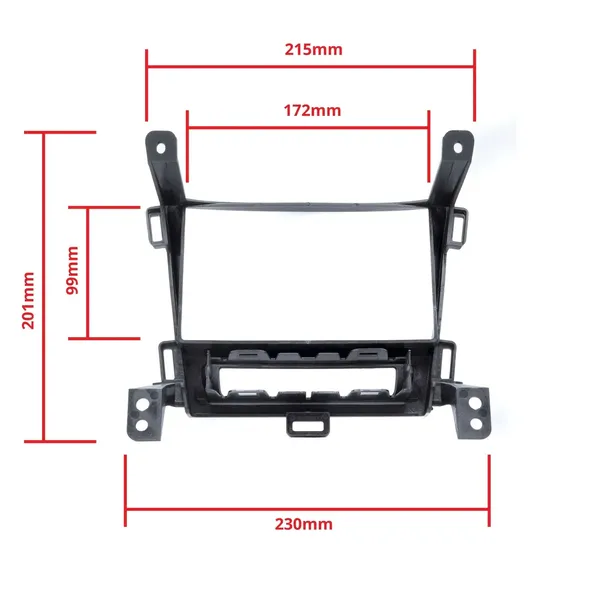 Ramka pozwala w prosty sposób umieścić w miejscu oryginalnego radia, odtwarzacz niefabryczny, ramka posiada uchwyty, zatrzaski, miejsca na śruby pasujące w oryginalne miejsca.