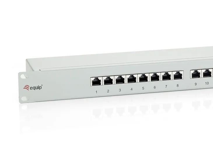 Equip 326316. Złącze(a): RJ-45, Materiał pokrycia styków: Złoto, Obsługiwane typy kabli: Cat6. Kolor produktu: Szary, Typ montażu: Montaż półkowy, Pojemność stelaża: 1U. Szerokość produktu: 44 mm, Wysokość produktu: 483 mm, Głębokość produktu: 109 mm. Szerokość opakowania: 150 mm, Głębokość opakowania: 75 mm, Wysokość opakowania: 560 mm