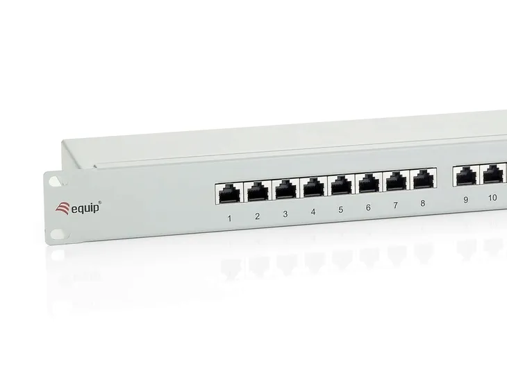 Equip 326324. Złącze(a): RJ-45, Materiał pokrycia styków: Złoto, Obsługiwane typy kabli: Cat6. Kolor produktu: Szary, Typ montażu: Montaż półkowy, Pojemność stelaża: 1U. Szerokość produktu: 44 mm, Wysokość produktu: 483 mm, Głębokość produktu: 109 mm. Szerokość opakowania: 150 mm, Głębokość opakowania: 75 mm, Wysokość opakowania: 560 mm