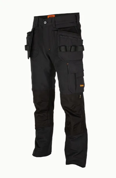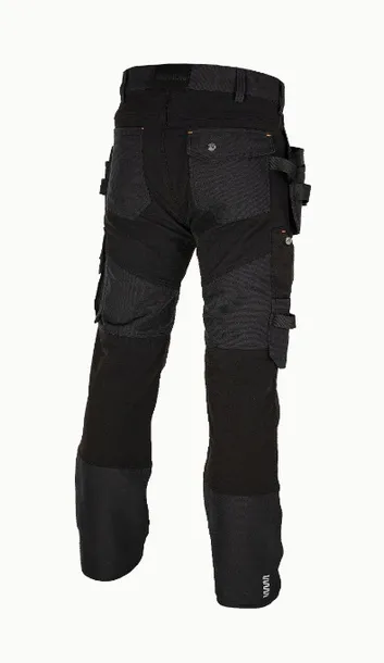 Funkcjonalne kieszenie z przodu, z tyłu oraz po bokach, wykonane z materiału rip-stop (Cordura). Odpinane dodatkowe kieszenie, pętle do zawieszania narzędzi, elementy odblaskowe, regulowana długość nogawki.