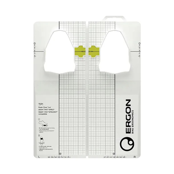 Narzędzie Ergon TP1 Pedal Cleat Tool jest szablonem, który pozwala na niezwykle precyzyjne ustawienie bloków SPD w twoich butach. Teraz symetryczne ustawienie bloków w obu butach stało się dziecinnie proste. Dokładne ustawienie jest możliwe dzięki siatce naniesionej na powierzchnię szablonu. Dzięki narzędziu Ergon TP1 można znacznie przyspieszyć montaż bloków w serwisie rowerowym, gdzie przecież liczy się czas i skuteczność.