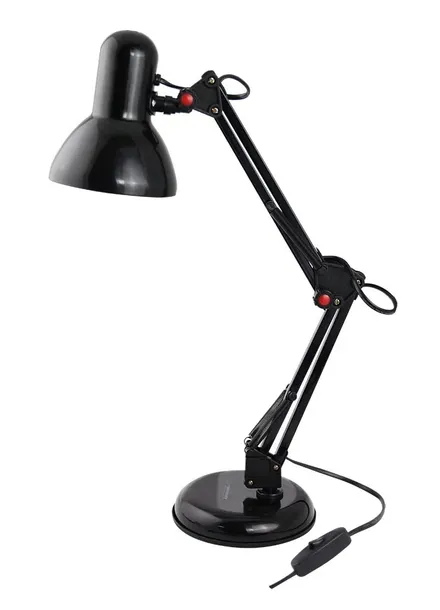 Lampka biurkowa z dużą, stabilną podstawką. Ruchome ramię umożliwia ustawienie lampki pod dowolnym kątem. W lampce można instalować żarówki LED z gwintem E27 i mocą do 12W. • Ruchome ramię • Przełącznik włącz/wyłącz • Gwint: E27 • Moc żarówki: GLS, CFL - max 25W LED – max 12W • Zasilanie: 220-240V/50Hz • Długość kabla zasilającego: ok. 1,2m Producent: Esperanza