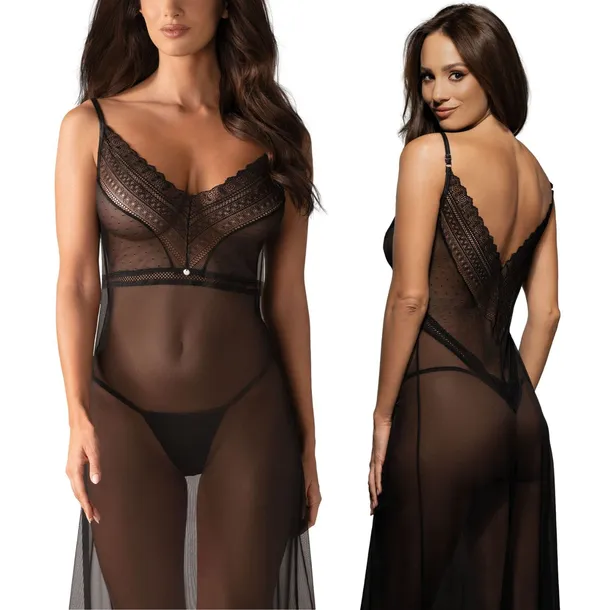 Estiqua koszulka czarna nocna długa prześwitująca XS/S Obsessive