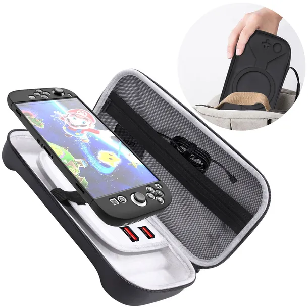 Etui zostało zaprojektowane tak, aby idealnie zabezpieczać konsolę Nintendo Switch 2 i utrzymywać ją w stabilnej pozycji. Pomieści także najważniejsze akcesoria oraz gry, zapewniając porządek i pełną ochronę podczas codziennego użytkowania oraz podróży.