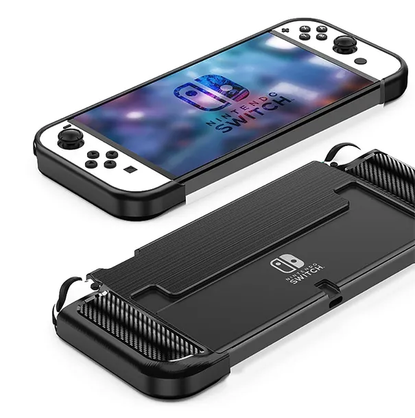 Nowe, dedykowane, wzmocnione etui CARBON do konsoli Nintendo Switch OLED, wykonane z wysokiej jakości materiału. Pokrowiec jest bardzo wytrzymały, ergonomiczny i doskonale chroni Twoją konsolę przed zniszczeniami mechanicznymi, wstrząsami, wilgocią i kurzem. Specjalnie zaprojektowane po bokach gripy zwiększają komfort użytkowania konsoli w trakcie dłuższych potyczek w trybie przenośnym.