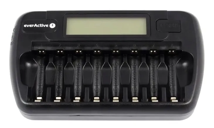 Ładowarka everActive NC 1200 posiada aż 12 niezależnych kanałów ładowania do akumulatorów Ni-MH w rozmiarach R6/AA lub R03/AAA, każde ogniwo jest ładowane indywidualnie.