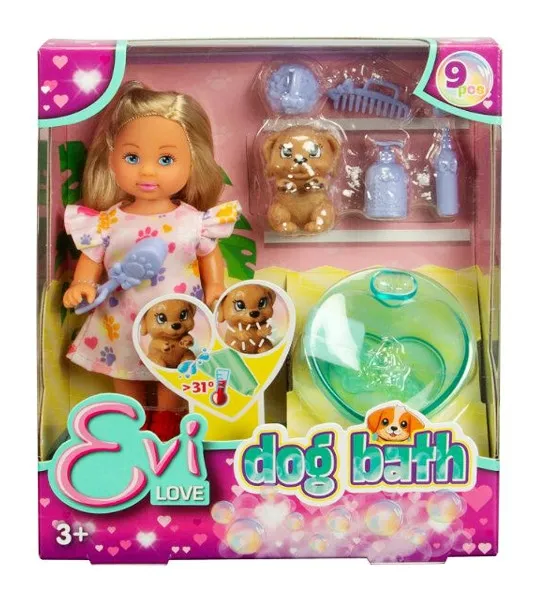 Dołącz do Evi i pomóż jej wykąpać uroczego pieska! Ten zestaw to idealna propozycja dla dzieci, które uwielbiają zabawę w opiekę nad zwierzętami. Dzięki realistycznym akcesoriom, kąpiel czworonoga stanie się prawdziwą przygodą! Cechy produktu: Lalka Evi – Urocza, mała laleczka gotowa do zabawy. Piesek do kąpieli – Pluszowy pupil, który potrzebuje troskliwej opieki. Akcesoria do pielęgnacji – W zestawie znajduje się wanna oraz inne elementy do kąpieli pieska. Wysoka jakość wykonania – Solidne ma