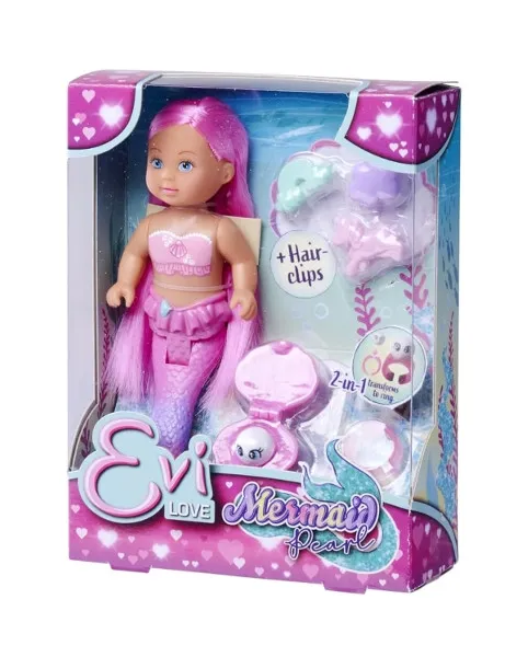 Podwodny świat ukrywa wiele tajemniczych stworzeń, ale jedną z najpiękniejszych istot jest Evi Love Perłowa Syrenka. Ta mistyczna syrenka o różowych włosach i fioletowym rybim ogonie wzbudza zachwyt każdej dziewczynki, który pragnie odkryć świat fantazji. Evi w swojej syreniej postaci prezentuje się niezwykle uroczo, a jej długie, różowe włosy są idealne do stylizacji. Dołączone spineczki w kształcie chmury, tęczy i jednorożca pozwalają dzieciom eksperymentować z różnymi fryzurami, rozwijając p