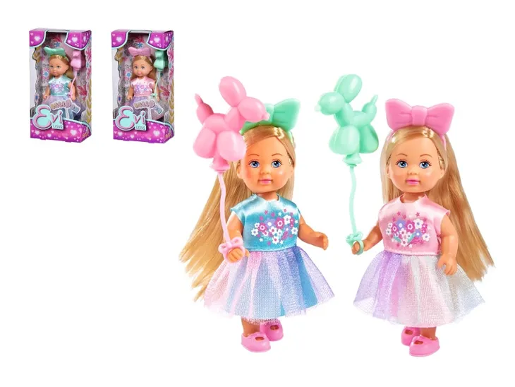 Laleczka Evi w uroczym, pastelowym stroju, wdzięku dodaje tiulowa spódniczka i dobrana kokarda na głowie, a także balon w rączce. Laleczka występuje w 2 rodzajach
