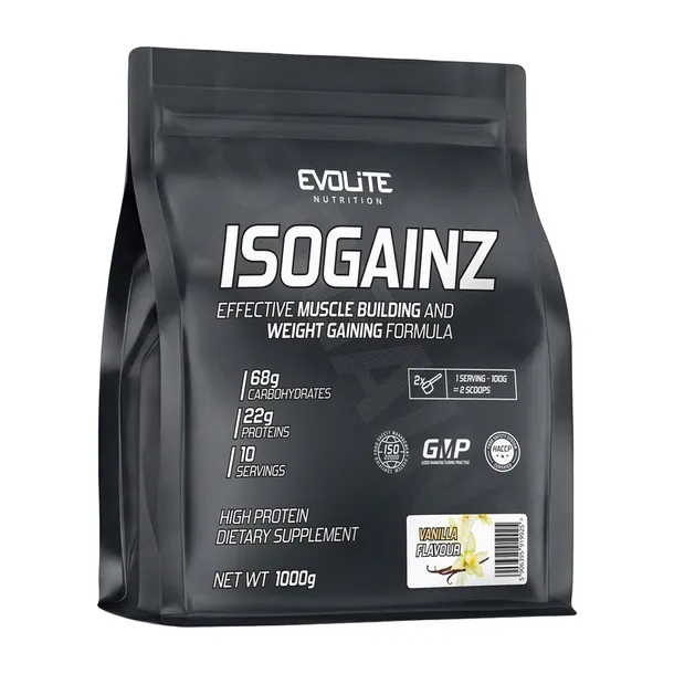 Evolite IsoGainz 1000 g to gainer, który ma za zadanie dostarczyć niezbędnych składników odżywczych do regeneracji i budowy komórek mięśniowych, dzięki czemu może wspomagać wzrost masy.