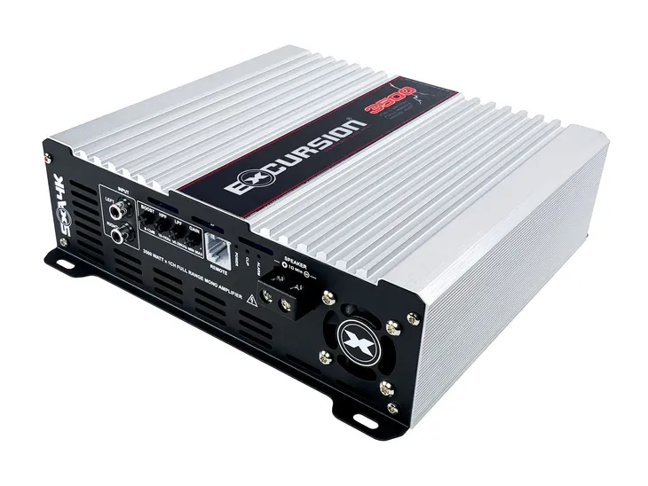Excursion SXA-4K PRO Samochodowy wzmacniacz 1-kanałowy o mocy 1x1500/2500/3500W RMS, stabilny do 1 Ω, szerokopasmowa cyfrowa klasa FRD (Full Range Digital), najnowsza wysokowydajna technologia Full Bridge Mono, wewnętrzny wentylator, współpraca z przewodowym regulatorem głośności (regulator sprzedawany oddzielnie).