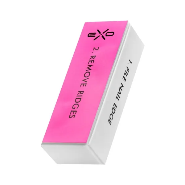 Czterostronny blok polerski EXO przeznaczony do pielęgnacji paznokci naturalnych – wygładza, wyrównuje płytkę, nadaje połysk oraz odpowiedni kształt. Cztery strony o różnych gradacjach przeznaczone są do innego zastosowania: piłowanie, usuwanie nierówności, polerowanie czy nabłyszczanie. Blok wygładza niedoskonałości i nadaje paznokciom połysk. Środek wypełniony jest gąbką, która jest bardziej sprężysta niż w przypadku tradycyjnego twardego pilnika. Polerka jest bezpieczniejsza, a nacisk zamortyzowany, przez co minimalizuje się prawdopodobieństwo uszkodzenia struktury paznokcia.