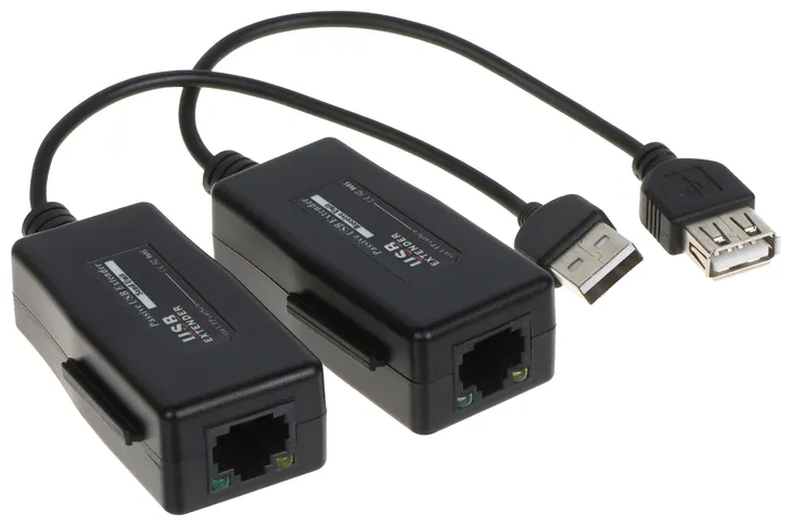Przedłużacz myszki USB za pomocą skrętki UTP kat. 5/5e/6. Pozwala na sterowanie rejestratorem za pomocą myszki z odległego miejsca. Maks. zasięg wynosi 100 m (USB 1.1).