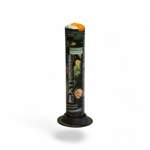EXTREME 100 STRZAŁÓW B4 to kompaktowa wyrzutnia rzymskich ogni, oferująca serię cichych, kolorowych strzałów. Ten produkt marki Jorge zapewnia stylowy pokaz świetlny bez nadmiernego hałasu, co czyni go przyjaznym dla otoczenia podczas wieczornych uroczystości.