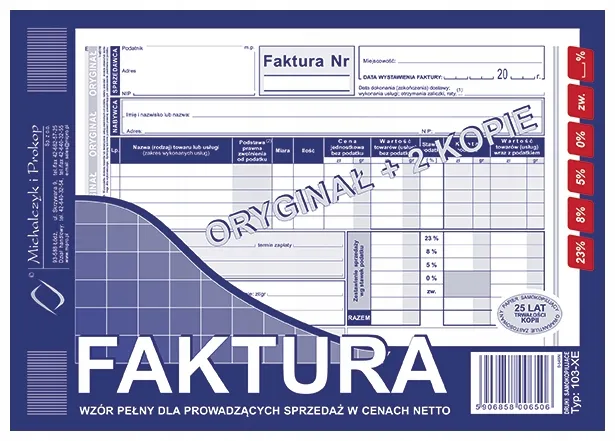 format: A5rodzaj papieru: samokopiującyzastosowanie: faktury i inne dokumenty wynikające z przepisów o podatku od towarów i usługoprawa: bloczek 81 kartekdruk: jednostronny (oryginał + 2 kopie)