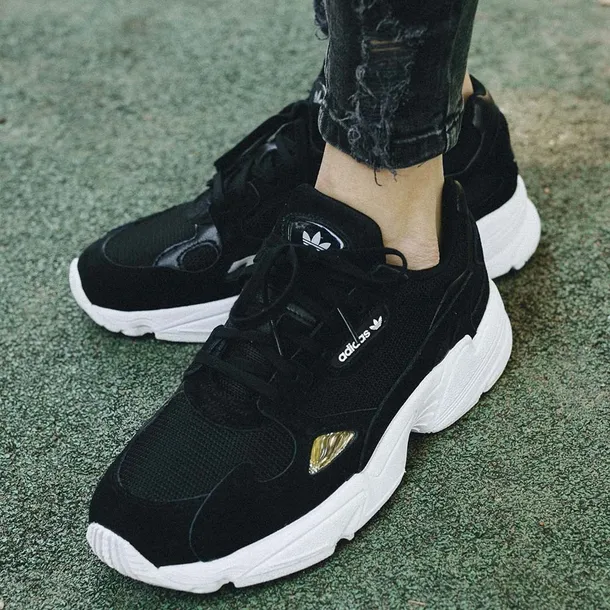 Sneakery w stylu butów biegowych retro z lat 90.Model Falcon czerpie inspirację z wzorów butów biegowych z lat 90. oraz z beztroskiego, buntowniczego stylu w sztuce, muzyce i modzie tej dekady. Te buty mają charakterystyczny dla lat 90. look za sprawą żywych kolorów i szerokiej, solidnej konstrukcji. Model ma cholewkę z siateczki i dużą podeszwę środkową, stworzoną z myślą o komforcie przez cały dzień. Przestronna strefa palców; szeroka konstrukcja Model sznurowany Cholewka z siateczki i zamszu Stabilizujący Torsion System; wyściółka z przewiewnej siateczki; gumowa podeszwa zewnętrzna Lekka podeszwa środkowa z pianki EVA Poczucie stabilizacji Kolor produktu: Core Black / Core Black / Ftwr White Kod produktu: B28129