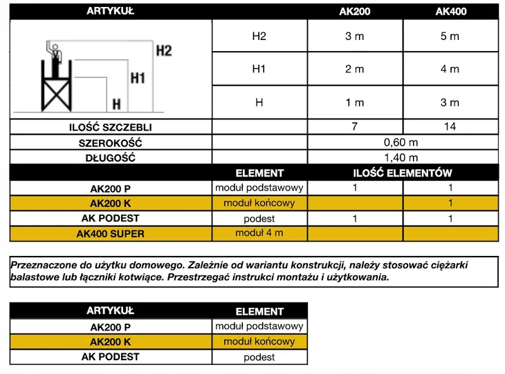 PODEST ROBOCZY model AK200 i AK400