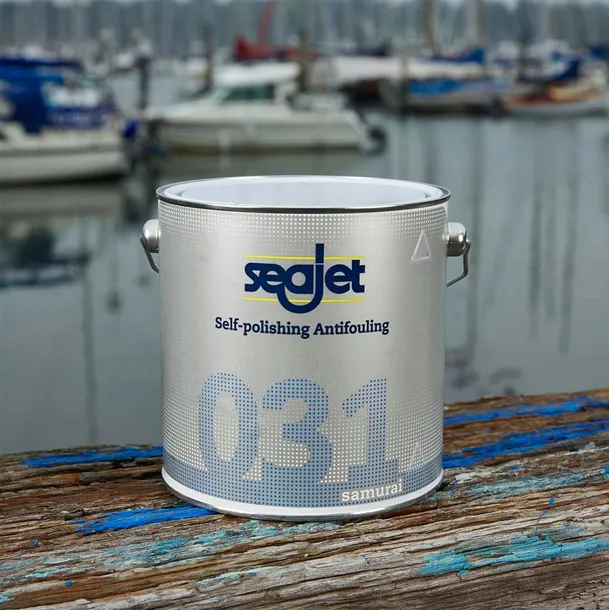 ANTIFOULING SEAJET 031 SAMURAI to samopolerująca farba przeciwporostowa na bazie tlenku miedzi. Nadaje się do wszystkich typów łodzi i jachtów do prędkości 40 węzłów. Nie zawiera związków cyny. Stosownie do swoich samopolerujących właściwości kontakt z wodą ma stale świeża powłoka biocydów, co zapewnia bardzo skuteczną ochronę przed porastaniem oraz zapobiega tworzeniu się grubej powłoki antifoulingu na kadłubie. Nadaje się do stosowania na wody słodkie i słone. Nadaje się na wszystkie kadłuby za wyjątkiem aluminiowych. Nałożenie dwóch warstw zaleca się w celu osiągnięcia skutecznej ochrony kadłuba. Farba musi wyschnąć przez min. 12 godziny przed wodowaniem. Czas do wodowania nieograniczony.