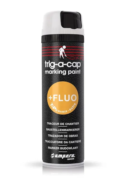 Farba przeznaczona do znakowania, sygnalizacji, oznaczeń topograficznych i prac budowlanych. Jest farbą na bazie rozpuszczalnika, posiada ergonomiczną i obrotową nakrętkę bezpieczeństwa. Dzięki TRIG-A-CAP EXTRA oznaczenia fluo są bardziej widoczne, długotrwałe, szybkoschnące i precyzyjne. Bez freonu, ołowiu i kadmu.