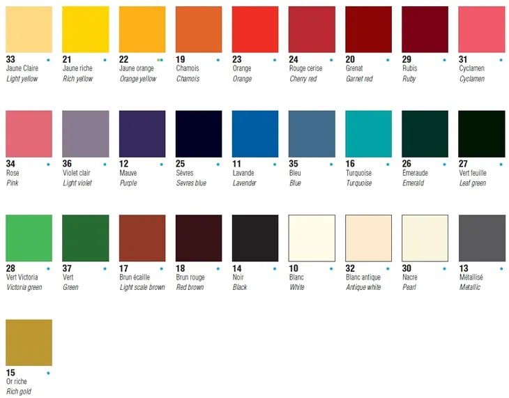Wzornik udostępniony przez producenta farb firmę Pebeo. Kolory mogą się nieznacznie różnić ze względu na ustawienia monitora.