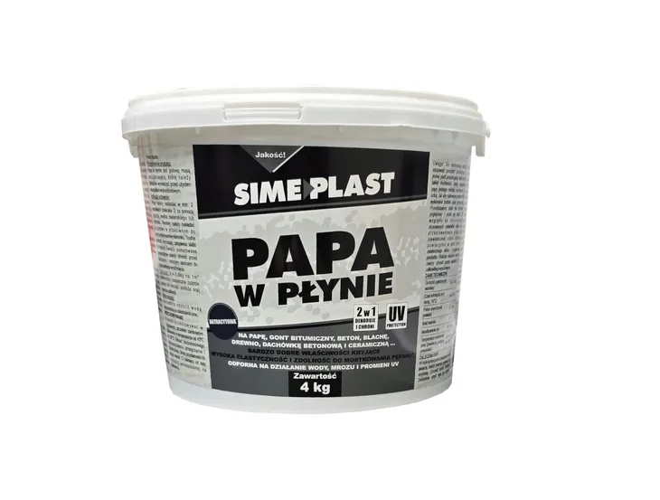 Papa w płynie jest gotową do użycia, jednoskładnikową masą posiada bardzo dobre właściwości kryjące, doskonałą przyczepność do różnorodnych podłoży na zewnątrz (papę, gont bitumiczny, beton, tynk, blachę, dachówkę betonową i ceramiczną, drewna, eternitu itd.), wysoką elastyczność mostkującą pęknięcia, a po wyschnięciu tworzy powłokę odporną na działanie wody, mrozu i promieni UV.