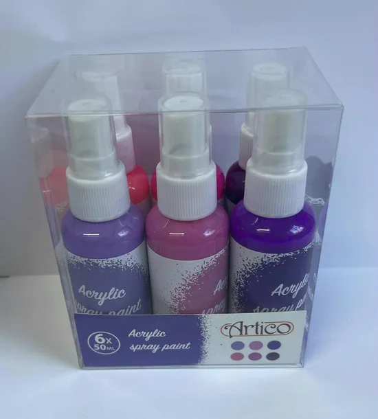 Farba akrylowa w sprayu, na bazie wody. Do użycia na płótnie, papierze, kartonie i drewnie.
