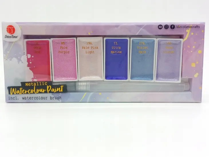 W zestawie 18 metalicznych odcieni z 3 pędzelkami do farb wodnych
