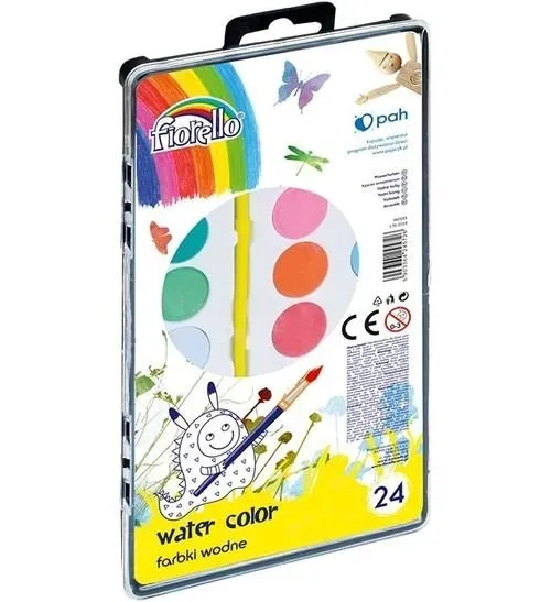 Komplet FARBEK SZKOLNYCH Dla DZIECKA Farby wodne 24 kolory FIORELLO SUPER