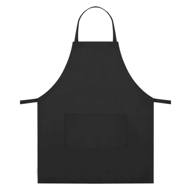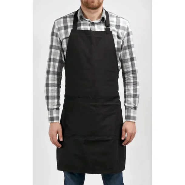 Model w klasycznym czarnym kolorze posiada trzy pojemne kieszenie z przodu, które umożliwiają przechowywanie drobnych akcesoriów kuchennych lub grillowych. Regulowany pasek z klamrą pozwala dopasować fartuch do użytkownika.