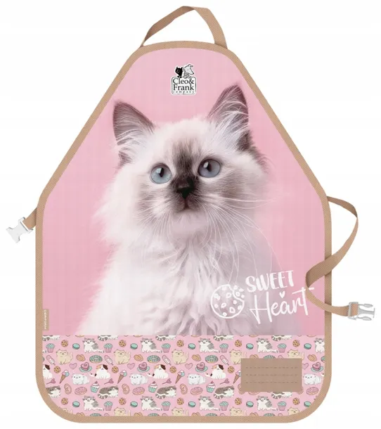 Ochronny fartuszek zapinany na klamrę, zabezpiecza odzież przed zabrudzeniem podczas prac kuchennych, plastycznych oraz różnych zabaw kreatywnych. Posiada etykietę na wpisanie danych dziecka. Może być prany ręcznie w temperaturze 30 stopni.