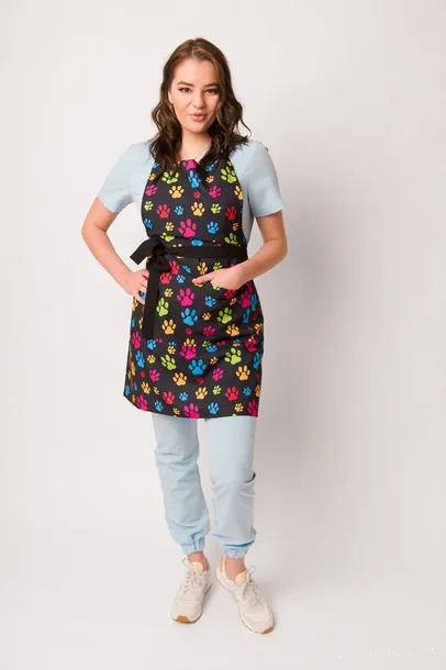 Fartuszek regulowany na szyi i wiązany wokół talii. Grubsze troczki pozwalają zawiązać przepiękną kokardke z przodu lub z tyłu.