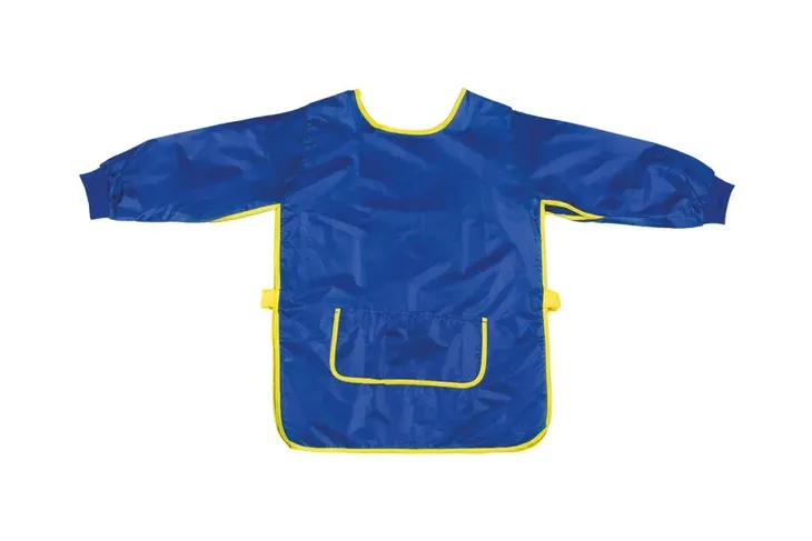 Ten ochronny fartuszek zabezpieczy dziecięcą odzież przed ubrudzeniem. Fartuszek ma długi rękaw, a po bokach rzepy na gumkach, żeby łatwiej było go dopasować. Jest wykonany z łatwo spieralnej tkaniny nylonowej. Zalety: