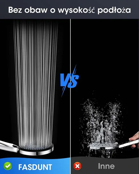 - Wysokie Ciśnienie Wody: Słuchawka prysznicowa FASDUNT wykorzystuje zaawansowaną technologię turbosprężarki, która skutecznie zwiększa ciśnienie wody. Zapewnia to komfortowe wrażenia podczas kąpieli, nawet przy niskim ciśnieniu w instalacji.