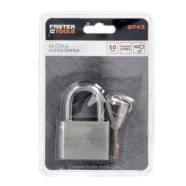 FASTER TOOLS kłódka nierdzewna 50mm sprawdzi się w różnych sytuacjach, od zabezpieczania bram i furt do użycia w szafkach, szopach, czy kontenerach. Dzięki swojej wszechstronności, jest idealnym wyborem zarówno dla domu, jak i firmy.