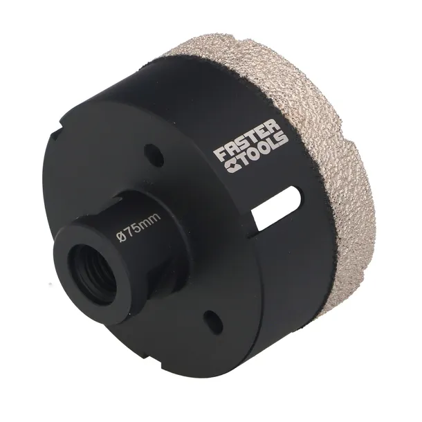FASTER TOOLS otwornica diamentowa do gresu M14 75mm to niezastąpione narzędzie w rękach profesjonalistów, które umożliwia szybkie i precyzyjne wiercenie w materiałach o dużej twardości.