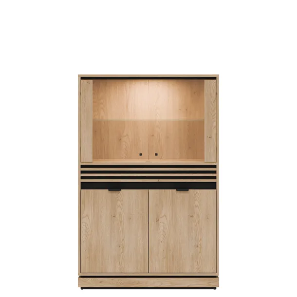 Witryna niska FE04 to nowoczesna witryna z hartowanym szkłem i opcjonalnym podświetleniem LED, która idealnie wyeksponuje Twoje ulubione dekoracje, książki czy eleganckie zastawy stołowe.
