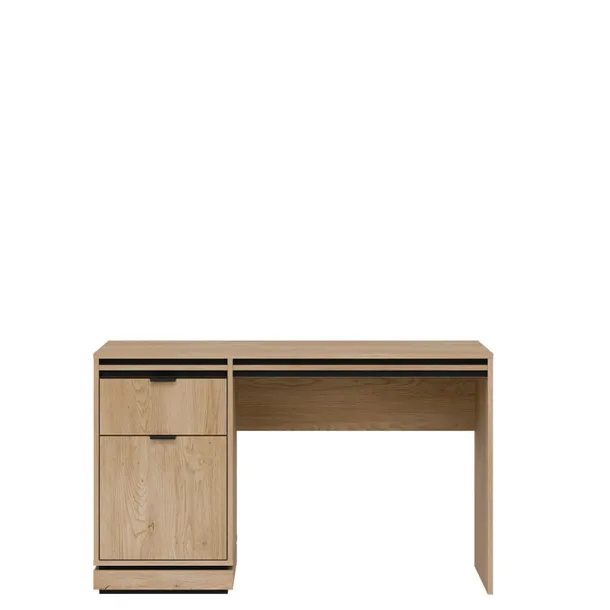 Biurko Ferro FE17 w kolorystyce dąb cremona torro to nowoczesny i elegancki wybór do biura lub pokoju młodzieżowego. Jego design łączy funkcjonalność z estetyką, oferując przestronną powierzchnię roboczą. Wykonane w kolorze dąb cremona torrro biurko, posiada ciepły, naturalny wygląd dzięki subtelnym wzorom słojów drewna, które nadają mu niepowtarzalny charakter. To biurko świetnie pasuje do różnych aranżacji wnętrz, od klasycznych po bardziej nowoczesne style, stanowiąc doskonały element wyposażenia, który łączy elegancję z praktycznością. Idealne do biura w domu lub pokoju ucznia.