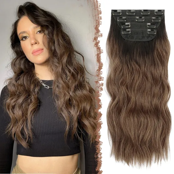FESHFEN Przedłużanie włosów klip do włosów 4 szt.